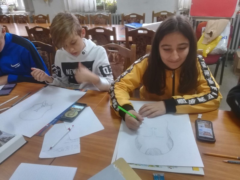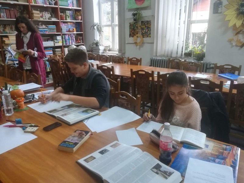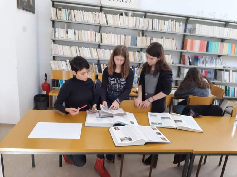 Петог новембра смо наставили сарадњу са градском библиотеком ''Радоје Домановић'' у оквиру истог међународног пројекта, с тим што смо овог пута формирали концепт за израду литерарних радова на основу историјске грађе и одабрали додатне илустрације из библиотечког фонда као модел за ликовне радове. Радионицу су реализовале Милица Првуловић, Анђела Ђорђевић, Тамара Маринковић и Катарина Лугавац из 8/2 са наставницом Бојаном Голубовић.