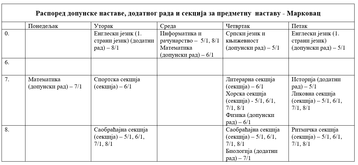 Ученици који имају потребу за додатном подршком у савладавању градива или желе да се укључе у додатни рад могу се обратити одељењском старешини или предметном наставнику.