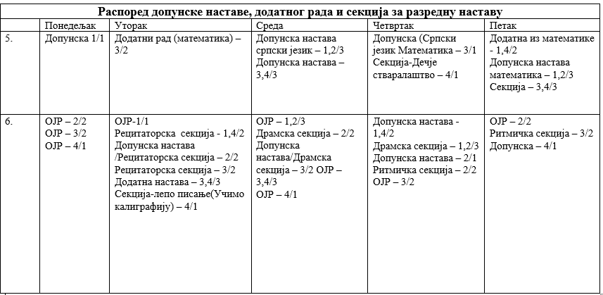 Допунска настава представља облик подршке ученицима који имају потешкоће у савладавању наставног градива. Циљ је да се сваком ученику омогући напредак у складу са његовим могућностима, да се ојача самопоуздање и подстакне интересовање за учење.