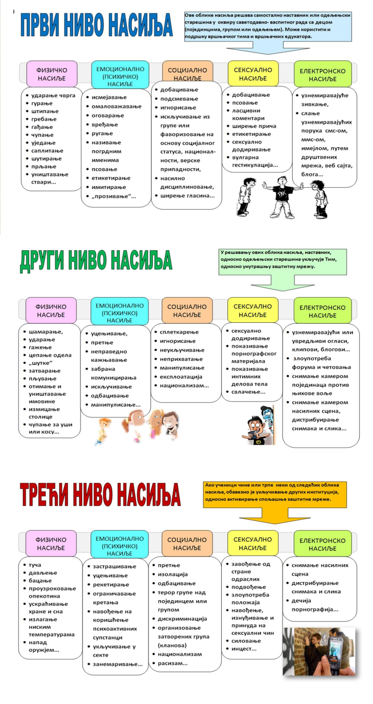 У нашој школи негује се култура поштовања, разумевања и ненасилне комуникације. Школа доследно спроводи све мере и активности усмерене на превенцију насиља, злостављања и занемаривања, као и на развијање толеранције и емпатије међу ученицима. Сви запослени, ученици и родитељи активно учествују у стварању безбедног и подстицајног окружења у којем је сваки облик насиља неприхватљив.